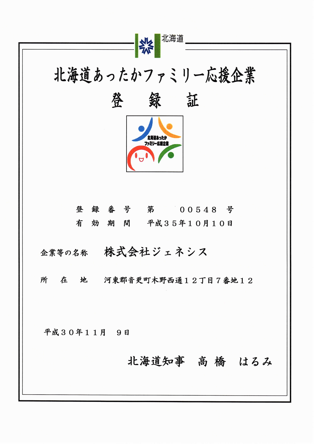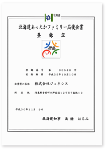 2018年12月19日付で北海道なでしこ応援企業に認定されました。